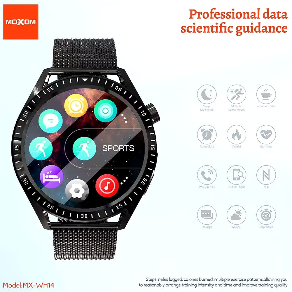 MOXOM SMARTWATCH MODEL MX-WH14 ZINC ALLOY CNC CRAFT WATCH ANTI-FINGERPRINT GLASS MIRROR 1.53" FULL FIT TOUCH SCREEN GPS TRAJECTORY D...